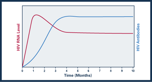 One disadvantage of antibody test is the presence of window period. As seen from the above graph, HIV antibodies only become significant from 3rd month onwards hence testing done during the window period will produce a false negative result. If a person is considered high risk, there is a need to repeat a second test 3 months after the first.